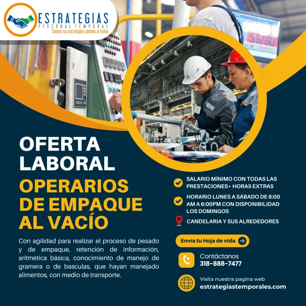 En Estrategias Personal Temporal, buscamos talento humano de calidad, pero sobre todo personas con sueños, metas y ganas de salir adelante.